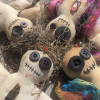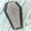 Voodoo is a widely misunderstood religion. Here in New Orleans, you'll learn it's a practice of love. Each of these dolls are handmade and dyed, with individually sewn faces. Their hair is made of Spanish moss from the City Park oaks, and they each wear strips of recycled silk ribbon. Each doll is blessed by a local practicing Voodoo priestess to be used only for the purposes of Good. They each have a crystal sewn to their body, and each comes in a 10" hand painted grey wooden coffin with the symbol of Papa Legba in black on the inside.